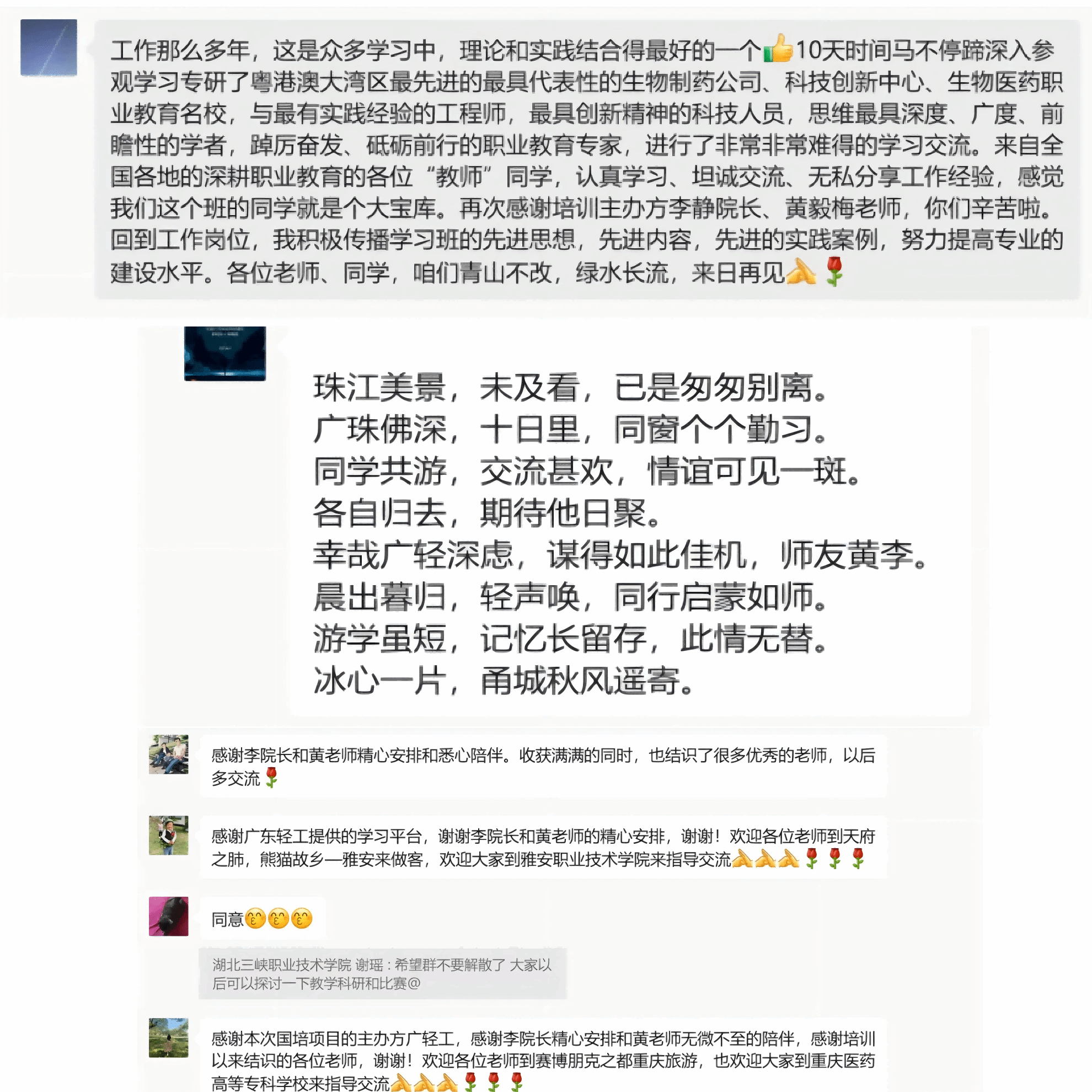 本次培训紧扣生物医药领域最新技术和行业发展趋势,采用多种培训形式相结合的方法,涵盖了前沿理论学习、专题研讨、企业参访和实训操作等内容。培训重点对接生物医药产业链核心技能,提升参训教师在专业建设、课程开发、团队建设、教学科研及校企合作方面的能力。