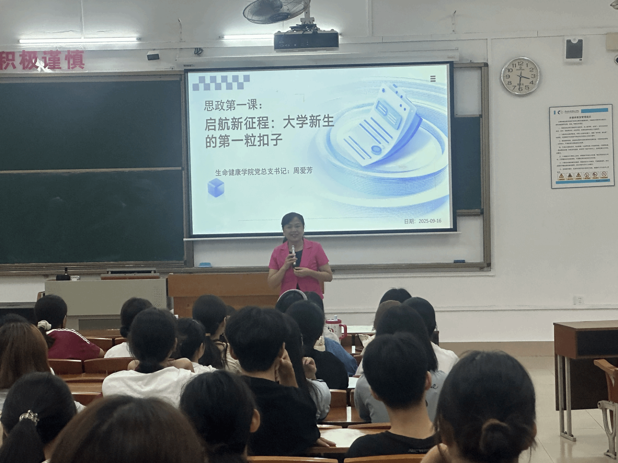 9 月 16 日,广东轻工职业技术大学生命健康学院党总支书记周爱芳为生物本和食品本两个本科专业班级的新生们带来了意义非凡的思政第一课,主题为“启航新征程:大学新生的第一粒扣子”。