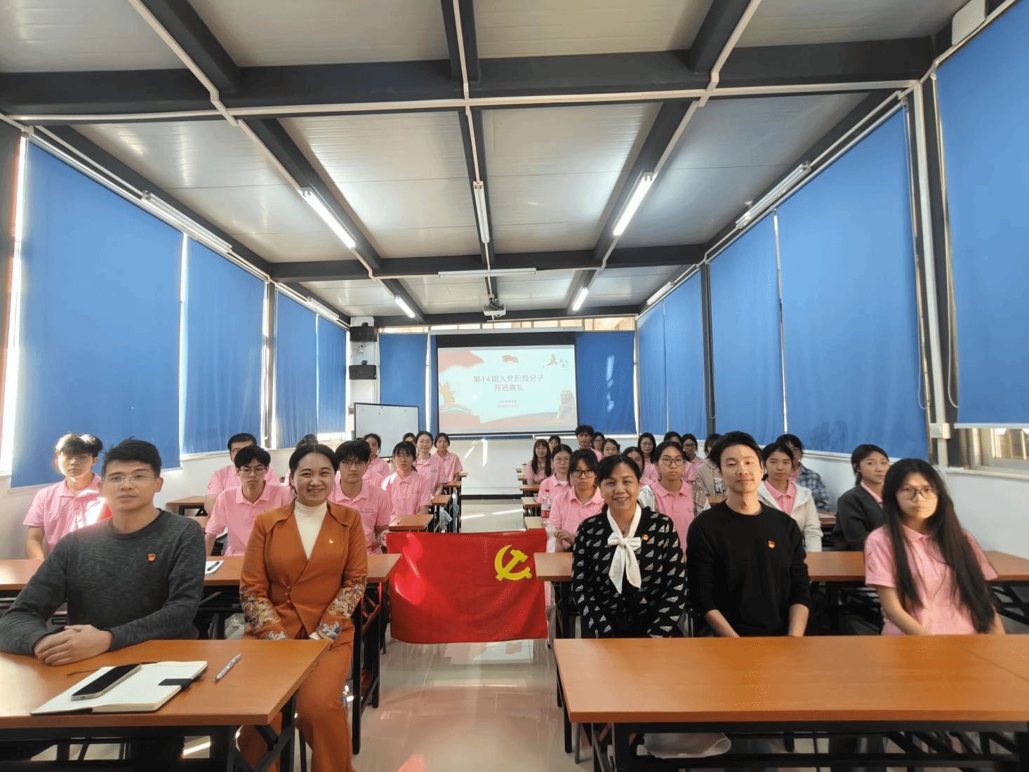 2025年11月25日下午,广东轻工职业技术大学生命健康学院第44期入党积极分子培训班开班典礼在第三实训楼C315室庄严举行。学院党总支书记周爱芳出席典礼并发表讲话,随后为全体学员讲授了专题党课。