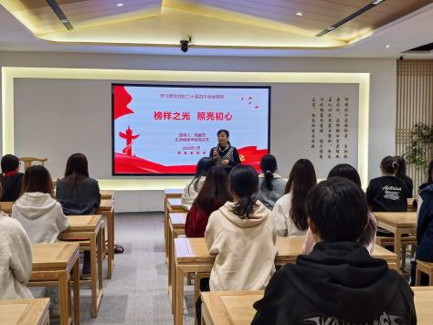 为提升学习实效,在专题节目结束后学院党总支书记周爱芳进一步作“榜样之光,照亮初心”专题党课,向同学们提出了新的要求,希望全体人员将以此次学习为契机,把榜样精神转化为实干行动,以实际行动践行党员初心,彰显青年担当。